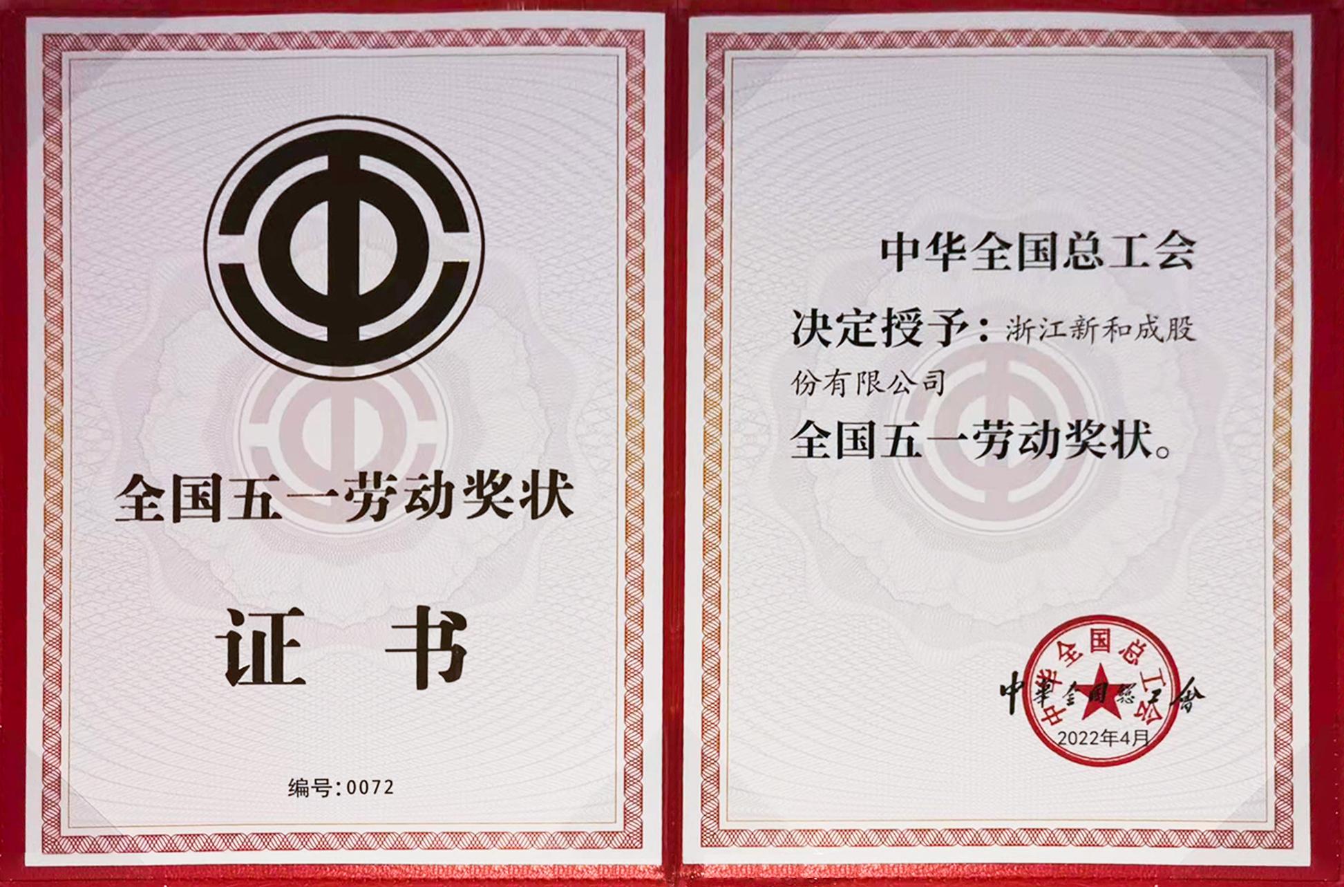 新和成荣获“全国五一劳动奖状”